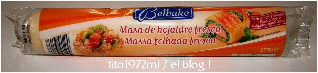 • La masa, que en su origen, fue de harina, levadura y agua (pan), pero que tiene algunas variaciones, puede ser de hojaldre (que va ser el caso de hoy), de maíz, de centeno, o de cualquier otra receta que encontréis por ahí. Puede ser fina o gruesa, muy crujiente o esponjosa, en vez de agua puede llevar vino, cerveza, etc,…. Los muy puristas dicen que de Pan. También la masa puede ser gramada, es decir doblada como si fuese un hojaldre. Pero enfín, hoy no nos vamos a romper la cabeza con esto y vamos a ir al Super y compramos dos rollos de masa de… HOJALDRE.