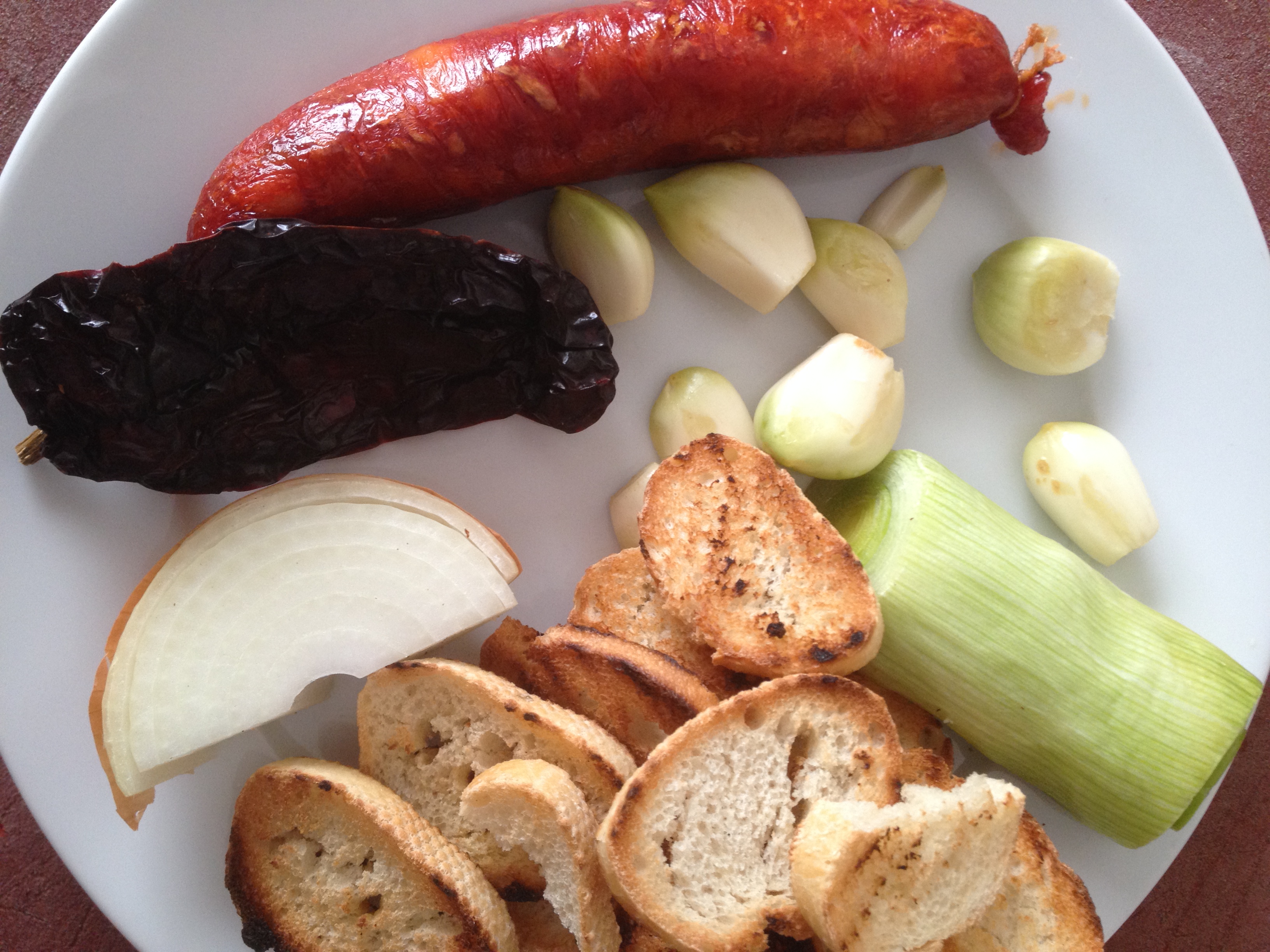 • 5 ó 6 ajos, pelados y cortados en trozos.