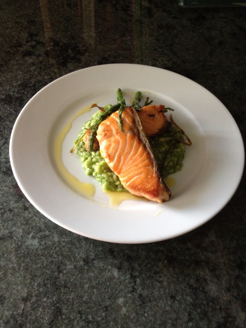 Publicado el septiembre 13, 2013 a × en Salmó sobre un risoto de verduras con espárragos verdes